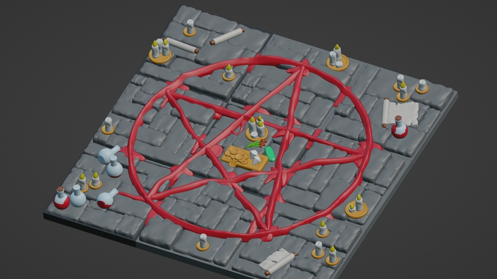 Horror blood pentacle ritual tabletop tiles in 28mm scale.